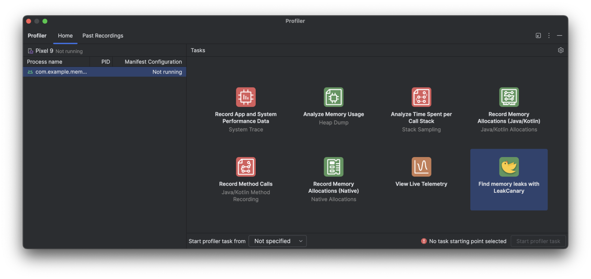To help you find memory leaks, Android Studio Panda adds LeakCanary integration directly in the Android Studio Profiler as a dedicated task, contextualized within the IDE and fully integrated with your source code.