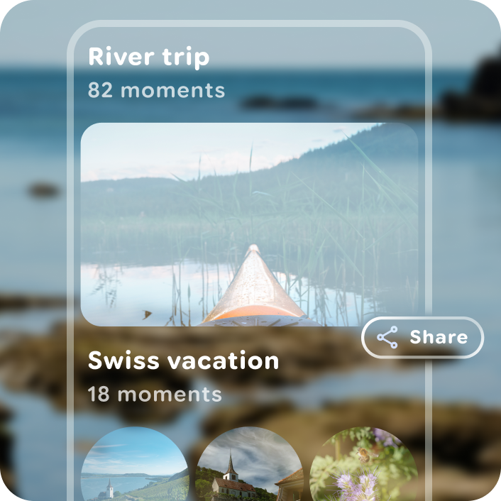 Usa las plantillas de tarjetas de Glimmer de Jetpack Compose para el contenido, ya que vienen en muchas variaciones y están optimizadas para seguir los principios de diseño de los lentes de inmediato.