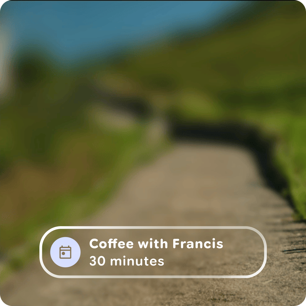 Kombinieren Sie Audio mit dezenten, leicht erfassbaren visuellen Elementen. Diese kontrastreichen, minimalistischen Grafiken liefern Informationen wie Navigation oder Benachrichtigungen und werden nur dann angezeigt, wenn sie relevant sind, um die Sicht des Nutzers zu verbessern, nicht zu behindern. Sie können Ihre App auf KI-Brillen mit Display erstellen und einzigartige Interaktionen für das Display entwickeln.
