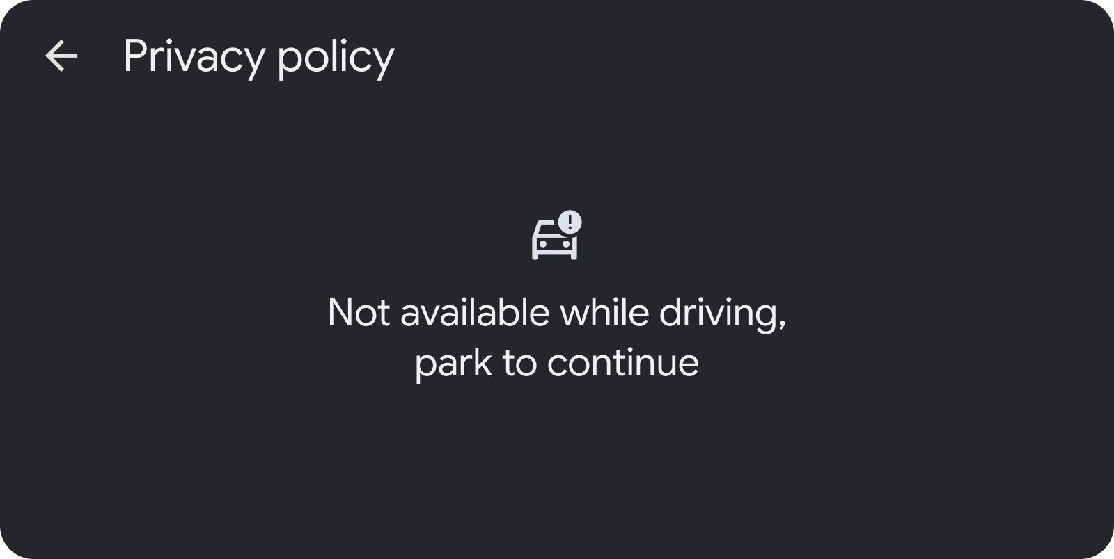 このテンプレートは、車が停車しているときに、プライバシー ポリシーや利用規約などの詳細なメッセージを表示し、ユーザーがアプリにログインする際に同意できるようにします(Android Auto の例)。