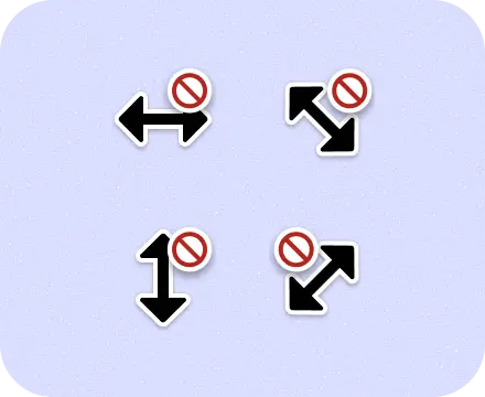 No cambiar el tamaño en todas las direcciones | Indica que el usuario no puede cambiar el tamaño de un objeto en ninguna dirección. |