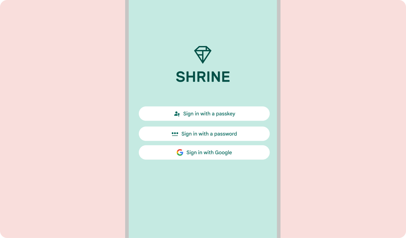 • अपने प्रॉडक्ट में पासकी की सुविधा इस्तेमाल करने के लिए, Credential Manager API का इस्तेमाल करें. क्रेडेंशियल मैनेजर में साइन-इन करने के सभी तरीके एक ही जगह पर दिखते हैं. इनमें पासकी, और फ़ेडरेटेड साइन-इन समाधानों की ज़रूरत होती है, इसलिए सभी साइन-इन विकल्प सामने रखें.