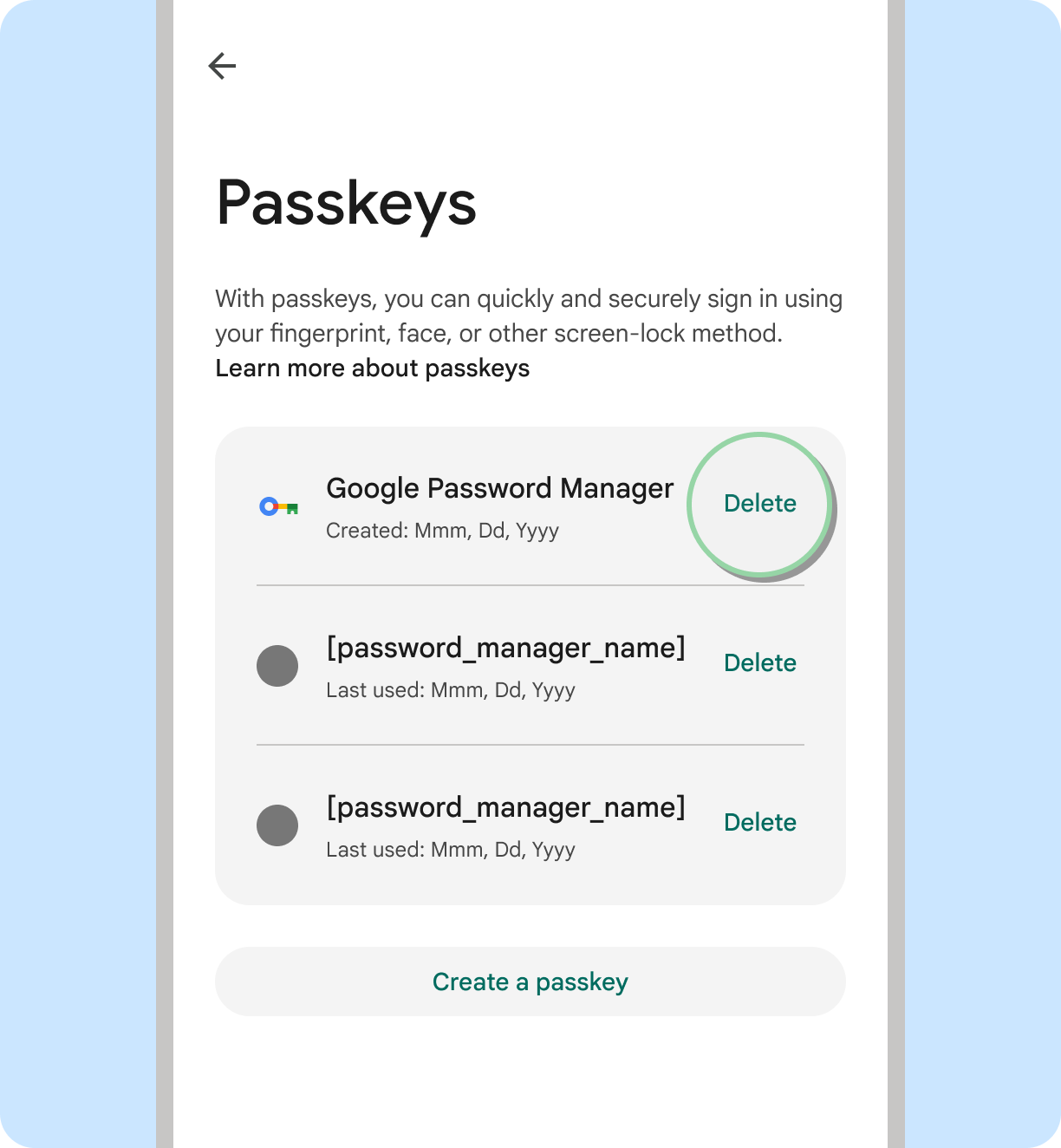 अगर उपयोगकर्ता अपनी सभी पासकी मिटा देते हैं, तो उन्हें फिर से पासकी डालने के लिए कहा जा सकता है.
