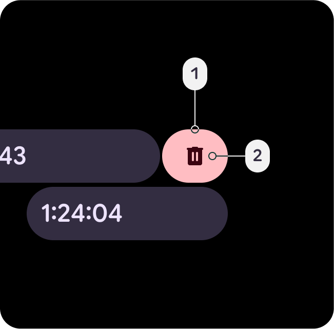 Un color rojo semántico, pero ligeramente teñido, que indica acciones de quitar, borrar, cerrar o descartar, como Deslizar para revelar. Se agregó como alternativa de contenedor, que es un poco menos alarmante y urgente que el color atenuado de error.