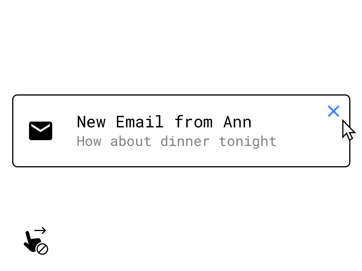 স্পর্শ-নির্দিষ্ট ইন্টারঅ্যাকশনের আওতায় লুকানো মূল বৈশিষ্ট্যগুলির জন্য কীবোর্ড বা মাউস বিকল্পগুলি প্রয়োগ করতে ভুলবেন না, যেমন টাচ অ্যান্ড হোল্ড অ্যাকশন, সোয়াইপ, বা অন্যান্য মাল্টি-টাচ জেসচার। একটি উদাহরণ সমাধান হল হোভারের সময় কোনও পৃষ্ঠে প্রদর্শিত বোতামগুলি প্রদান করা।