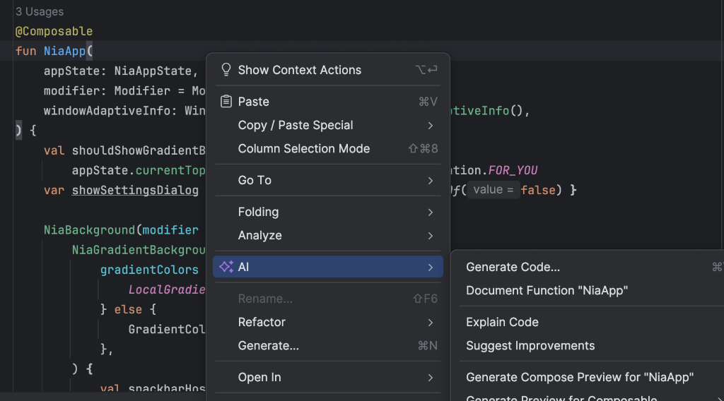 L'agente AI in Android Studio può generare automaticamente anteprime di Compose per i tuoi