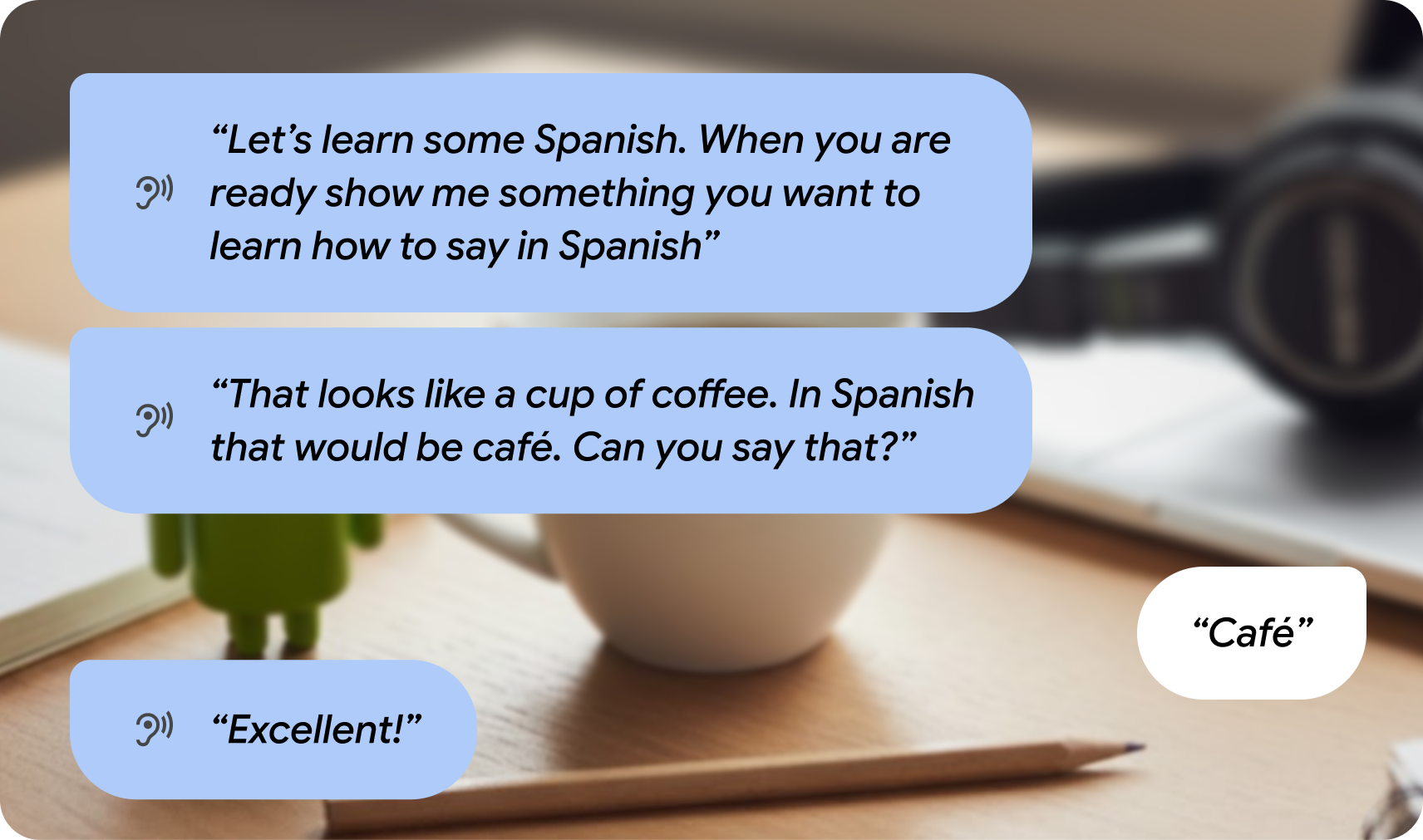 將 AI 和情境感知功能整合至 AI 眼鏡的應用程式體驗。使用 Gemini Live API 建構對話式體驗,透過語音與 Gemini 模型互動。