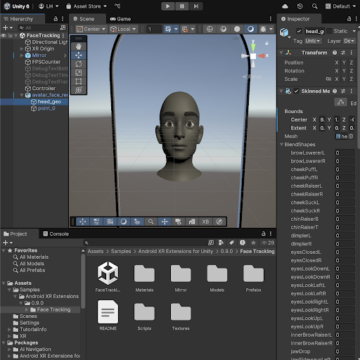 Unity 用 Android XR Extensions を使用して没入型アプリを作成する方法を学びます。このサンプルセットには、この Unity パッケージの各機能(フェイス トラッキング、HandMesh、オブジェクト トラッキングなど)のスタンドアロンの Unity プロジェクト サンプルが含まれています。
