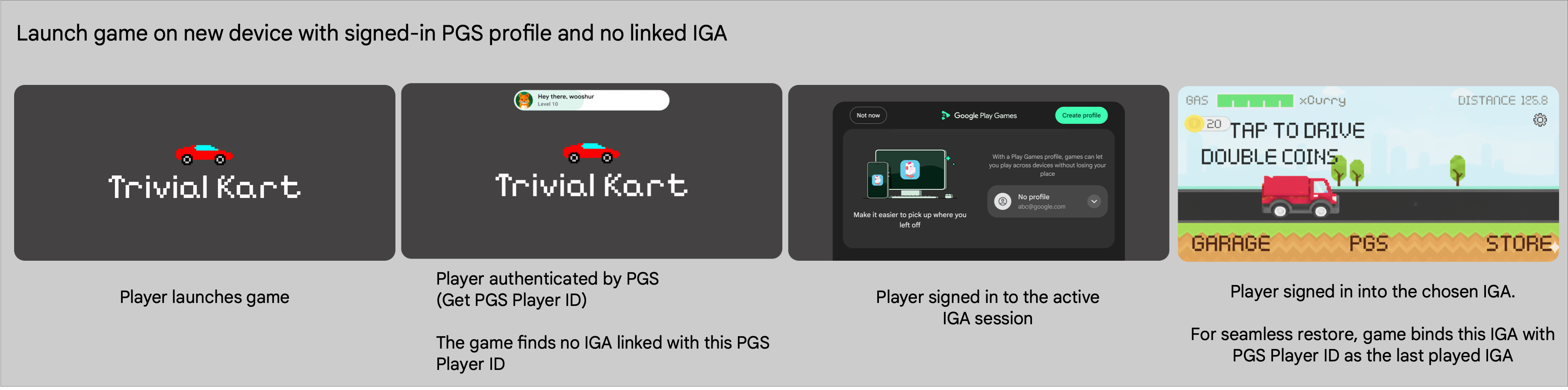 Khởi chạy trò chơi trên thiết bị mới bằng hồ sơ PGS đã đăng nhập và một IGA được liên kết