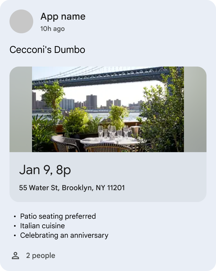 כדי להגביר את רמת העניין באפליקציה, כדאי להגיע למשתמשים במקומות שבהם הם נמצאים. אפשר לשלב את Engage SDK כדי להציג המלצות מותאמות אישית ותוכן המשך ישירות למשתמשים בכמה פלטפורמות במכשיר, כמו אוספים, חבילת הבידור וחנות Play. השילוב מוסיף פחות מ-50KB (דחוס) לחבילת ה-APK הממוצעת, וברוב האפליקציות הוא דורש כשבוע של זמן פיתוח. מידע נוסף מופיע באתר העסקי שלנו.