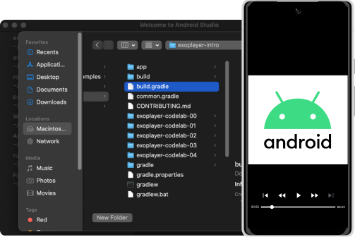 In dieser Anleitung erstellen Sie eine ExoPlayer-Instanz, binden sie in den Aktivitätslebenszyklus einer App ein, erstellen eine Playlist, spielen adaptive Videostreams ab, überwachen den Wiedergabestatus und passen die Komponenten der ExoPlayer-Benutzeroberfläche an.