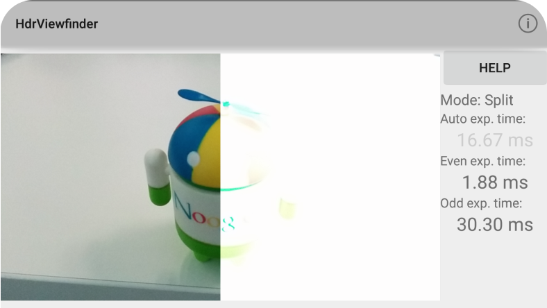 如何藉由交替在偶數和奇數影格上的兩個曝光值間交替感應器曝光時間,實作即時高動態範圍相機觀景窗,接著在每次拍攝新影格時,整合最新的兩個畫面