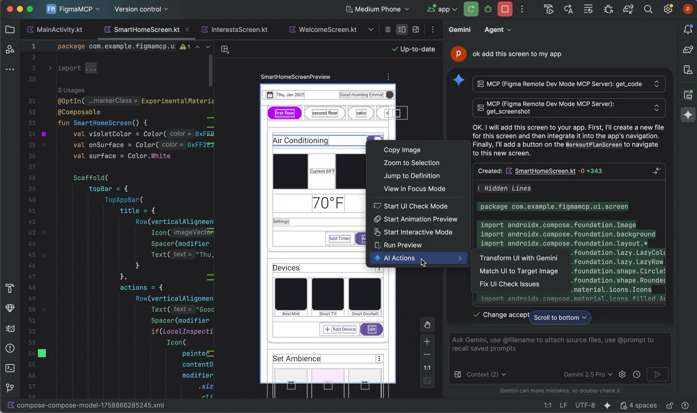 図 5: Gemini を使用して、Compose プレビューから UI 要素を直接変換する。