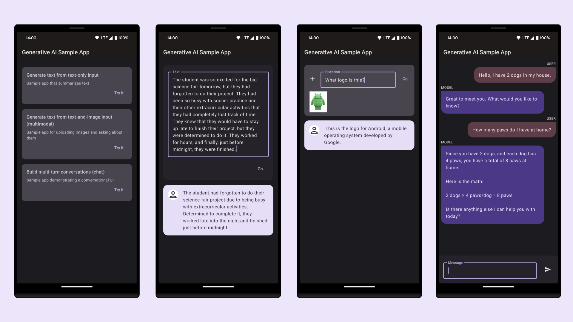 ลองใช้ความสามารถด้านแชท ข้อความ และมัลติโมดัลของ Gemini ในแอปตัวอย่าง