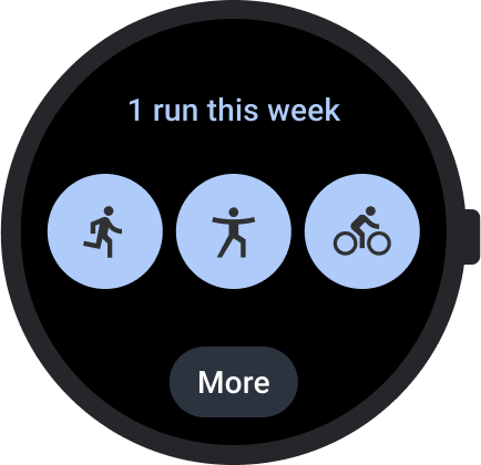 タイルやウォッチフェイスの追加機能など Wear OS の視認性の高いサーフェスを利用し、あらゆるワークアウトの指標をすぐに確認できるようにします。