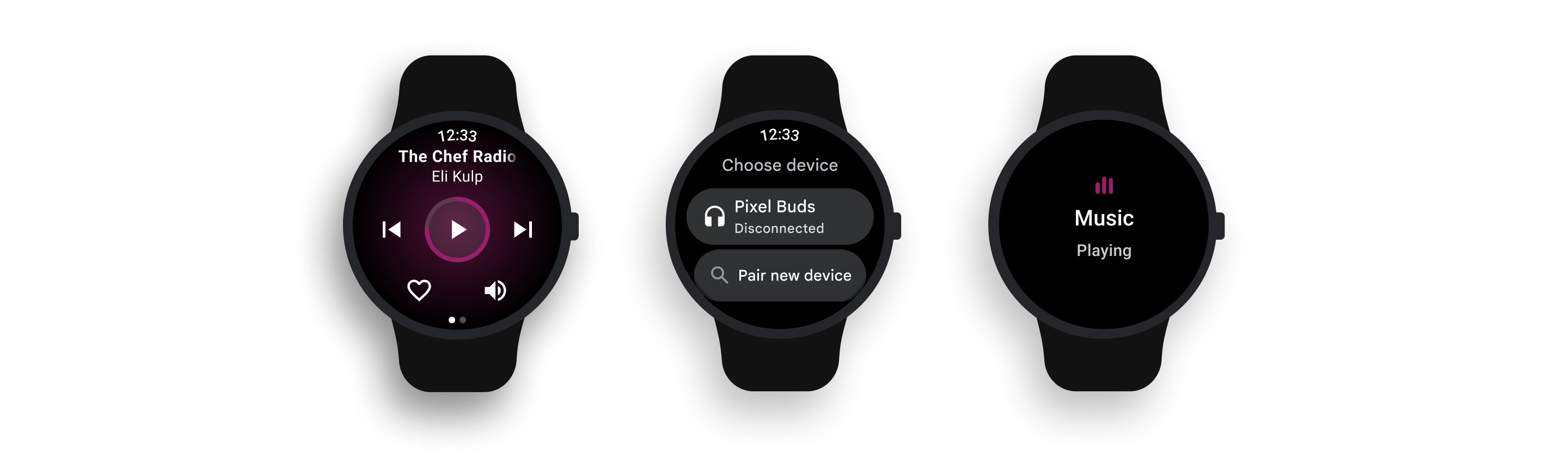 La riproduzione di contenuti multimediali dall'altoparlante dell'orologio non offre un'esperienza ottimale. Quando gli utenti avviano una sessione multimediale, invitali a selezionare un dispositivo di output più adatto, ad esempio le cuffie.